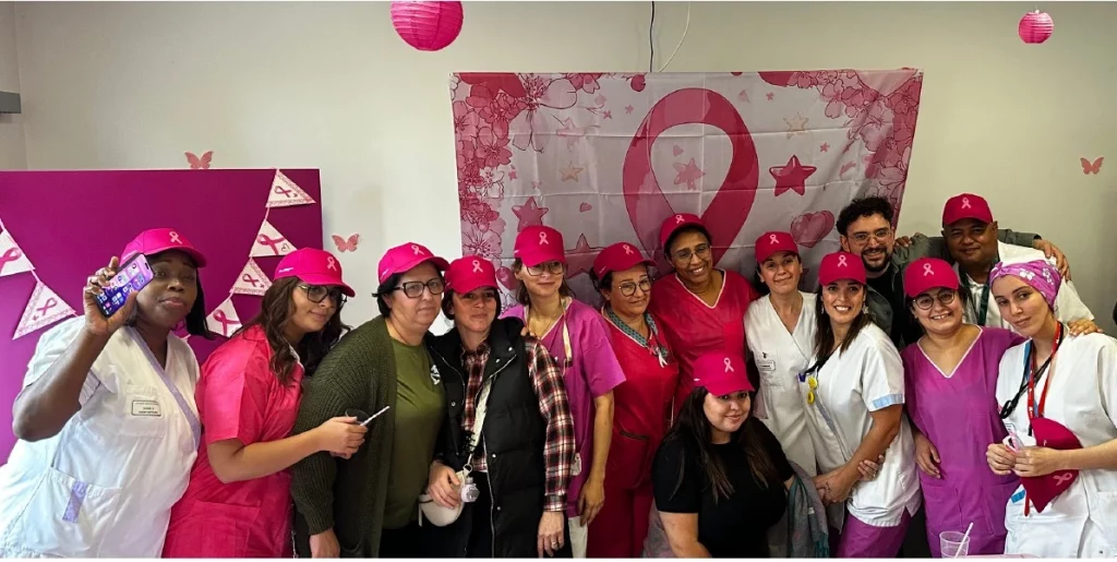 Le 16 octobre 2025, l’hôpital Sainte-Marie a organisé une journée spéciale de sensibilisation au cancer du sein, dans le cadre d’Octobre Rose. L’ambiance était conviviale : décorations, badges roses, échanges entre collègues… L’objectif était simple mais essentiel, parler de prévention et rappeler l’importance d’un geste souvent oublié : l’auto-palpation.